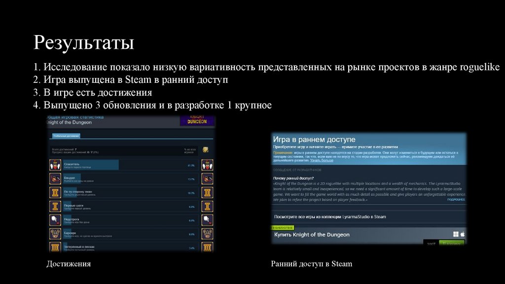 Результаты1. Исследование показало низкую вариативность представленных на рынке проектов в жанре roguelike