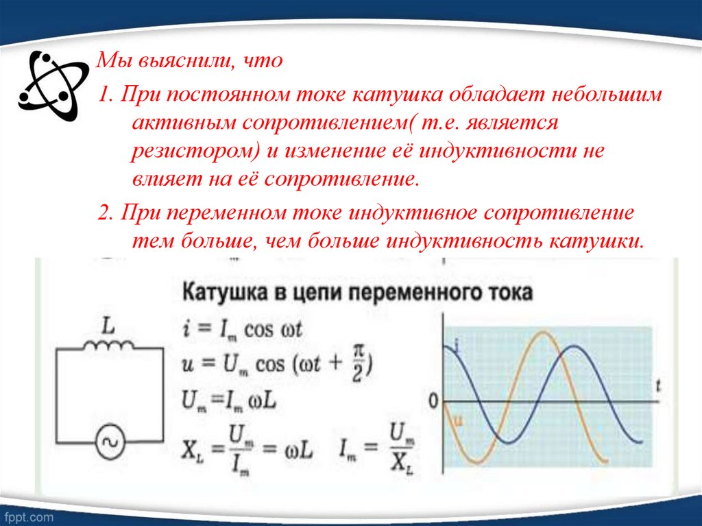 Мы выяснили, что1. При постоянном токе катушка обладает небольшим