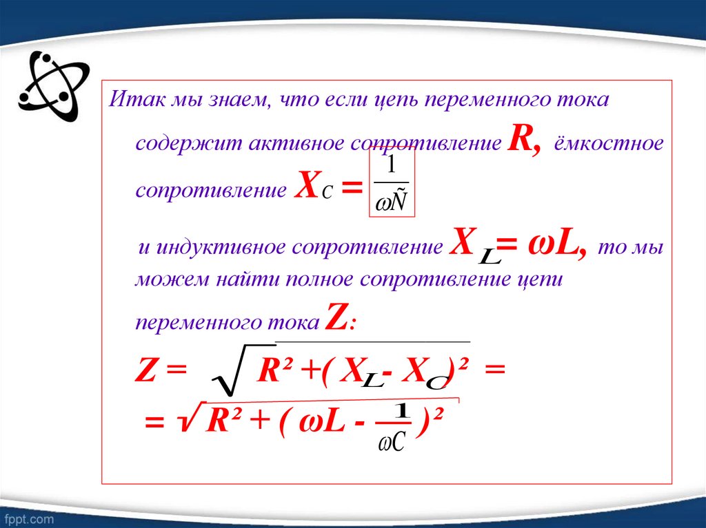 Итак мы знаем, что если цепь переменного токасодержит активное сопротивление