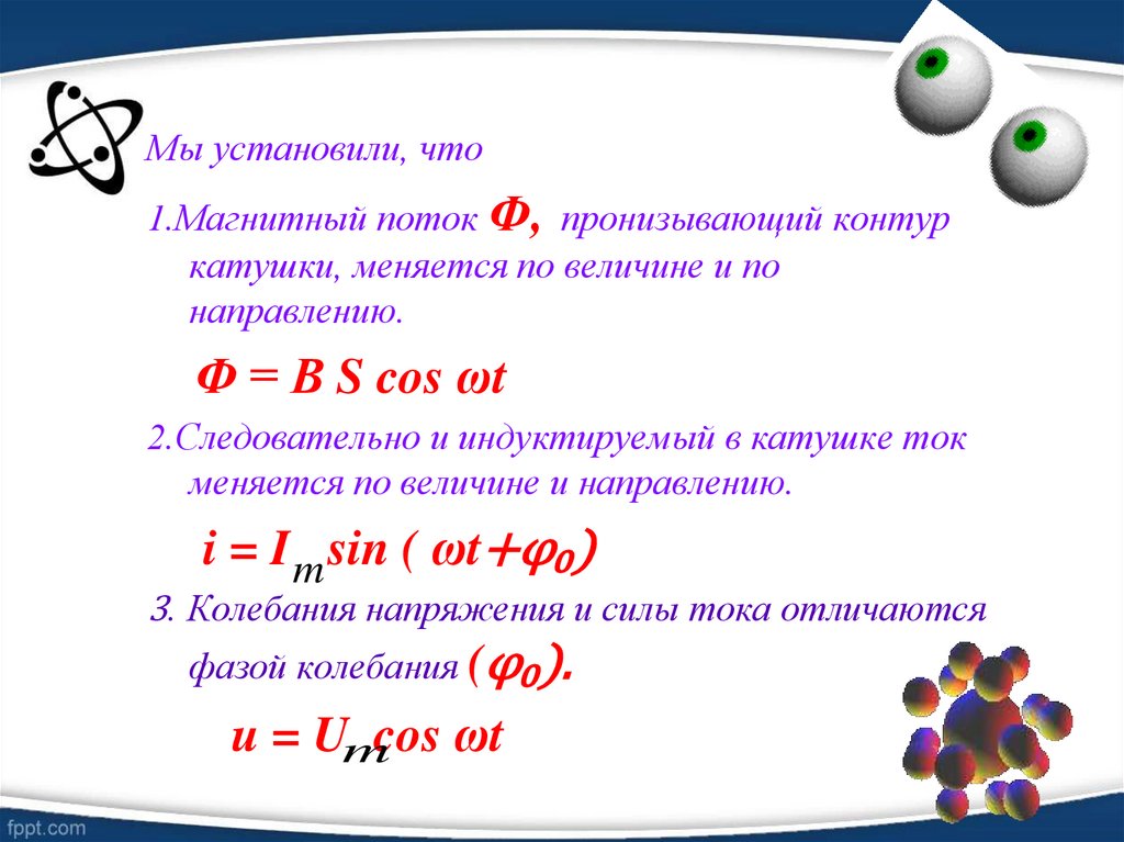 Ф = BS cos ωt; i= Imsin ( ωt+φ₀) ; u = Um cos ωt.