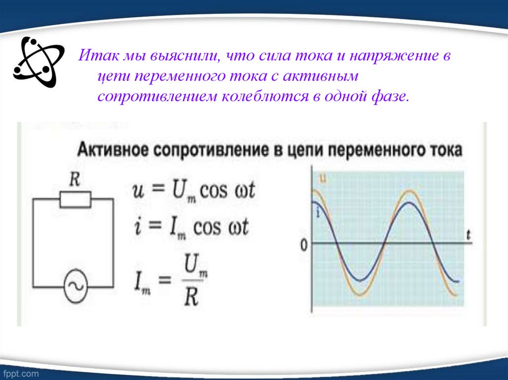 Итак мы выяснили, что сила тока и напряжение вцепи переменного тока с активным