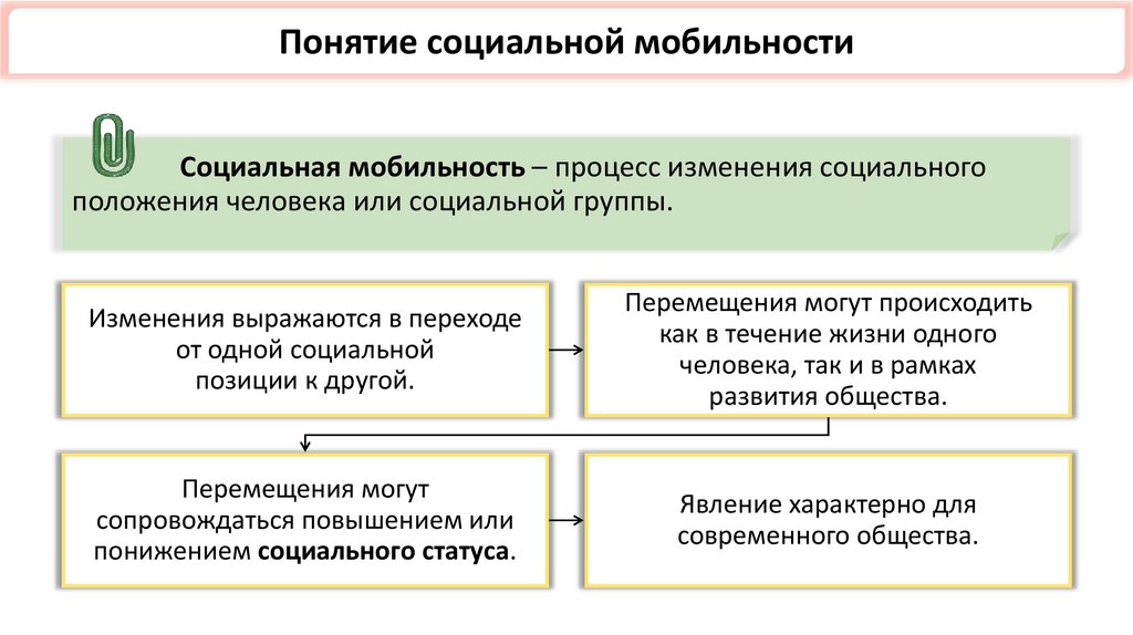 Понятие социальной мобильностиСоциальная мобильность – процесс изменения социального