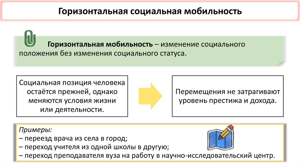 Горизонтальная социальная мобильностьГоризонтальная мобильность – изменение социального
