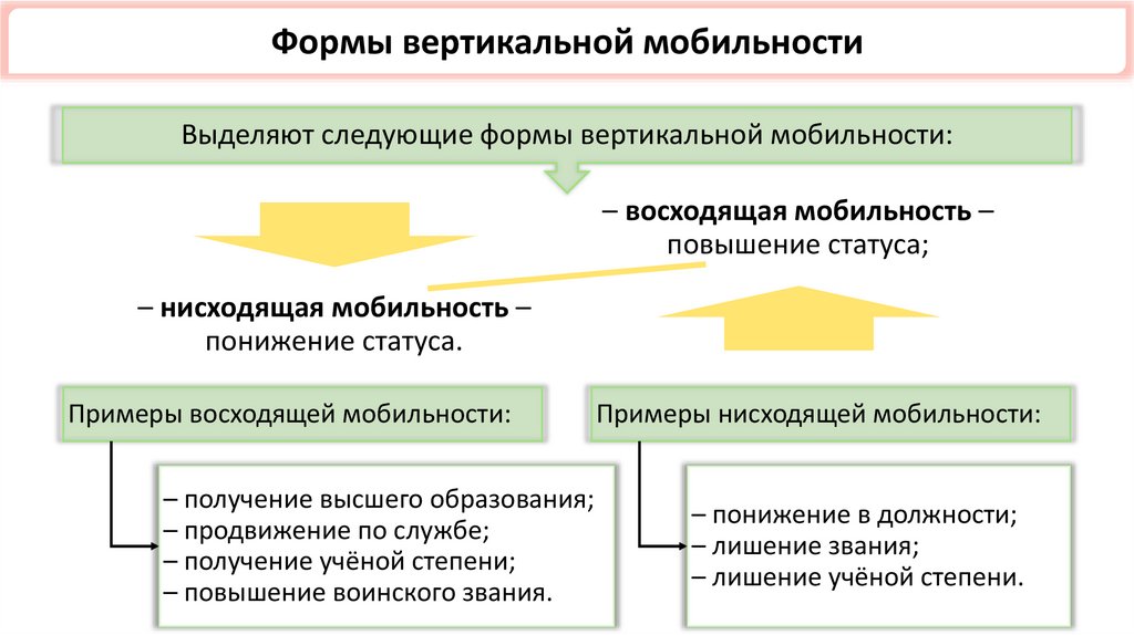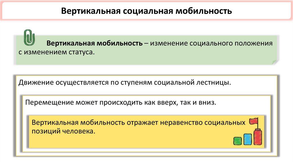 Вертикальная социальная мобильностьВертикальная мобильность – изменение социального положения