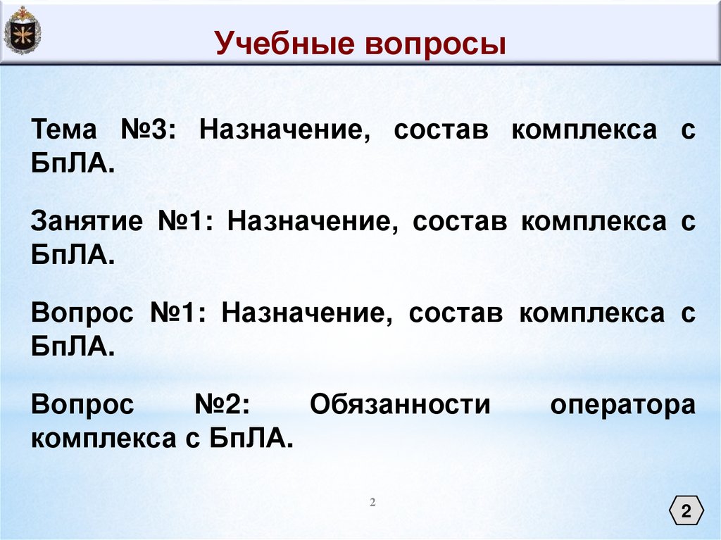 Учебные вопросыТема №3: Назначение, состав комплекса с