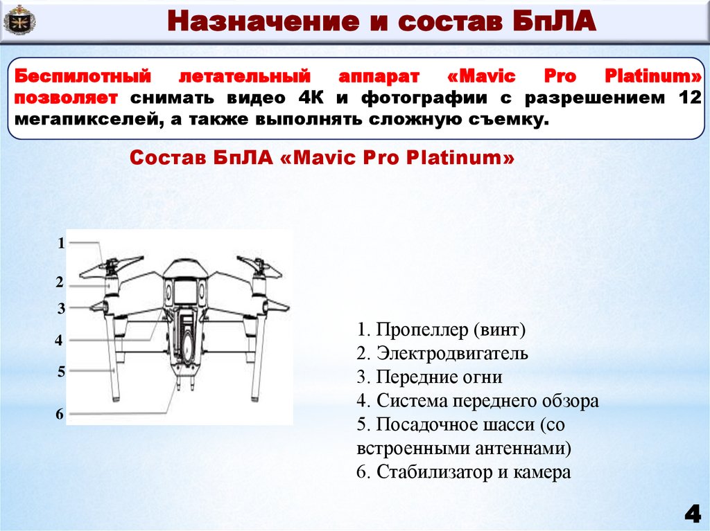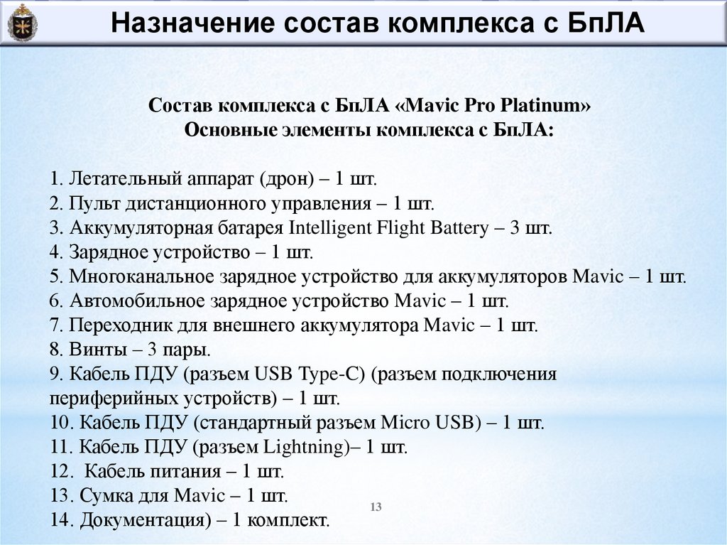 Назначение состав комплекса с БпЛАСостав комплекса с БпЛА «Mavic Pro Platinum»