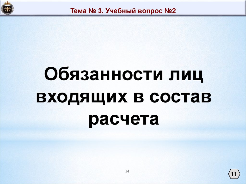 Тема № 3. Учебный вопрос №2Обязанности лиц