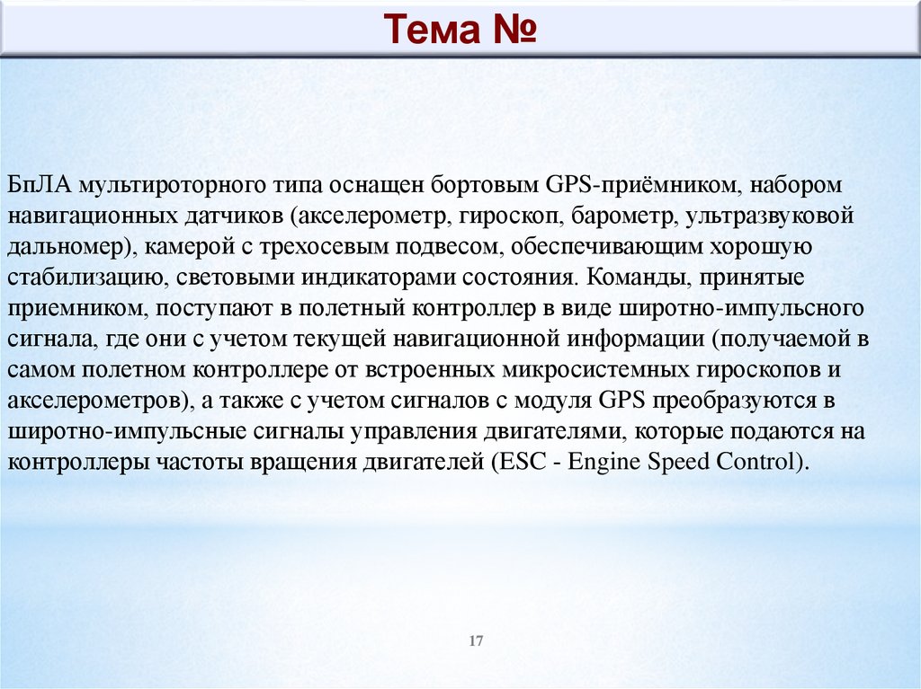 Тема № 3: Назначение, составовкомплексов БпЛА