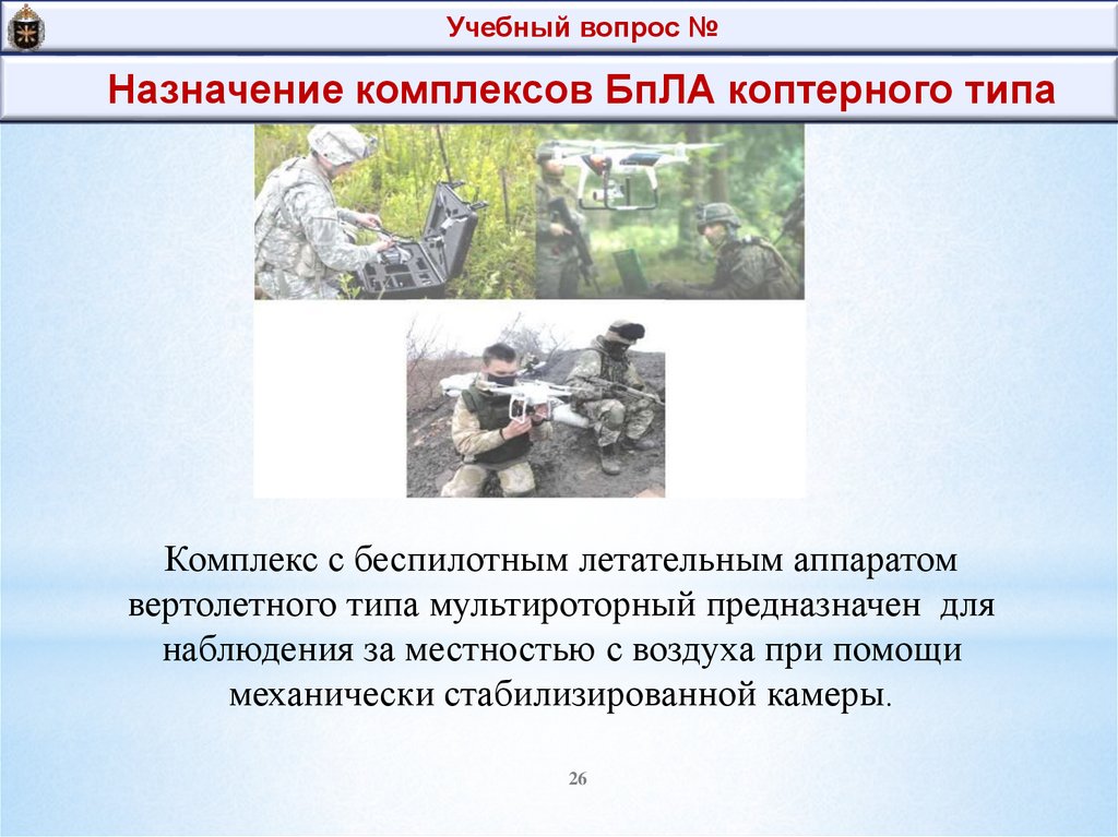 Тема № 3.Учебный вопрос № 1Состав комплексов БпЛА коптерного типа