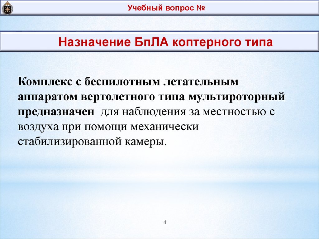 Учебный вопрос №Назначение БпЛА коптерного типа