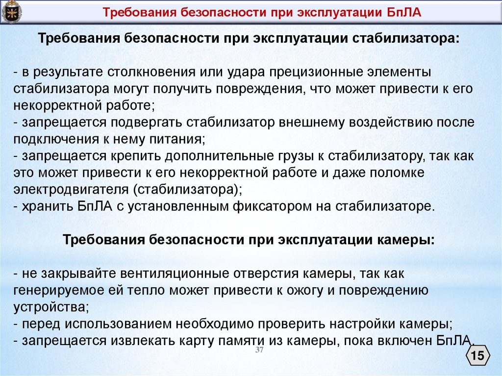 Оператор БпЛА несет полную ответственность за состояние БпЛА, выполнение полетного задания и