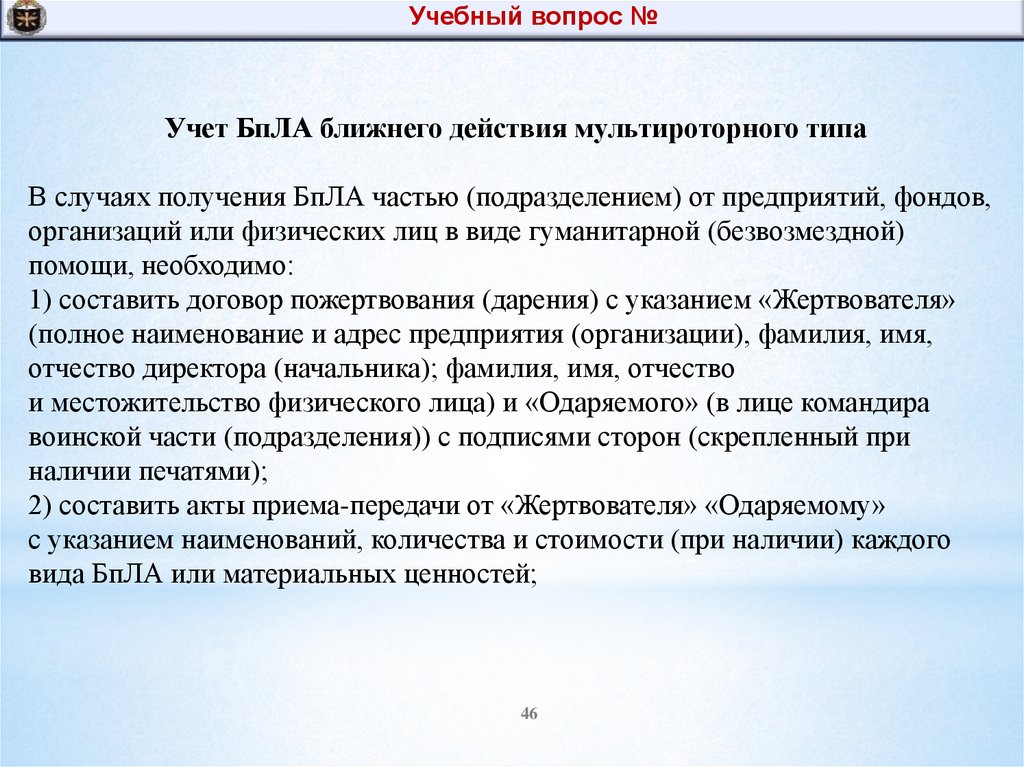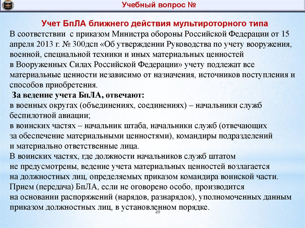 Учебный вопрос №Учет БпЛА ближнего