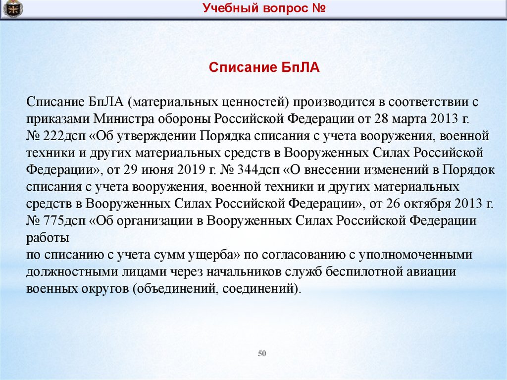 Учебный вопрос №Списание БпЛА