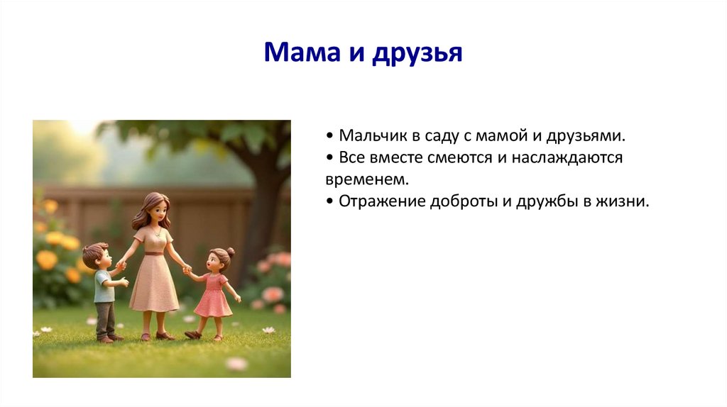 Мама и друзья• Мальчик в саду с мамой и друзьями.
