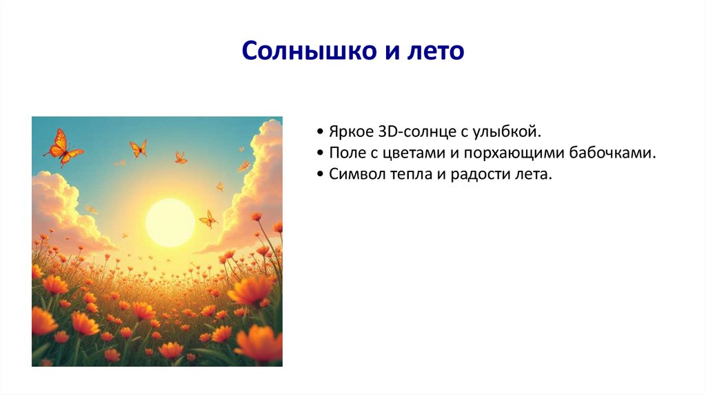 Солнышко и лето• Яркое 3D-солнце с улыбкой.