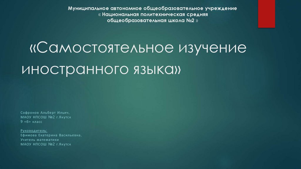 Муниципальное автономное общеобразовательное учреждение« Национальная политехническая средняя