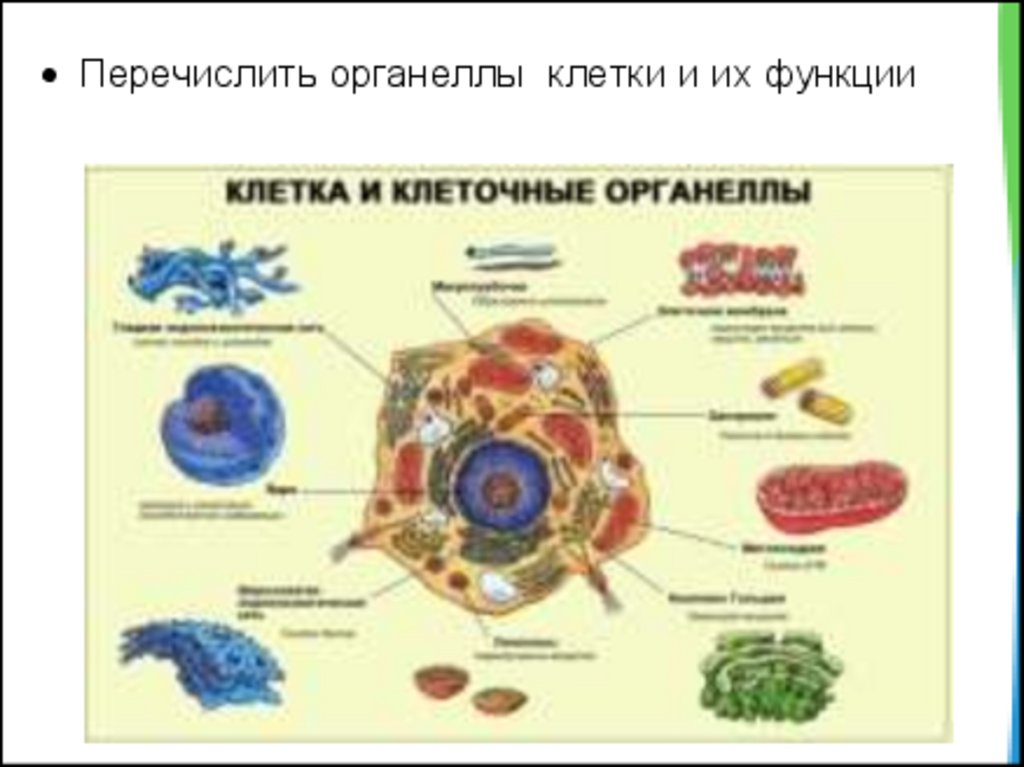 Перечислить органеллы клетки и их функции6.
