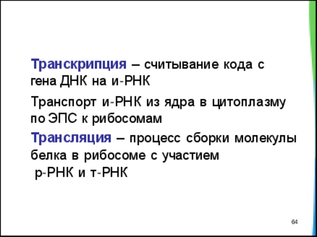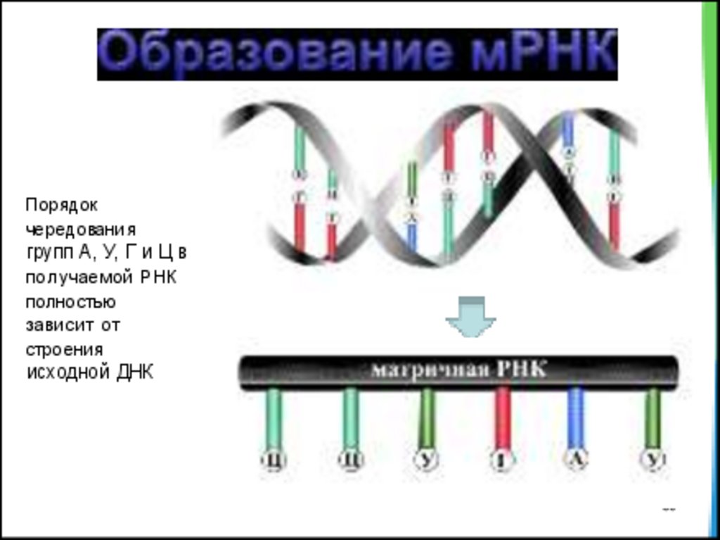 Транскрипция – считывание кода сгена ДНК на и-РНК