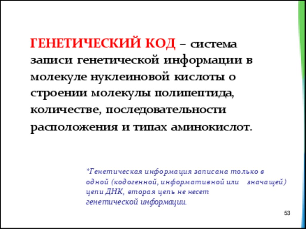 генетической информации, другую — с ее реализацией,