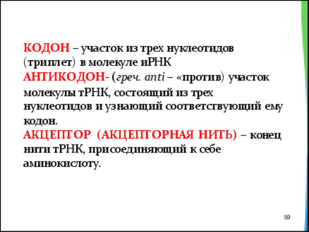 КОДОН – участок из трех нуклеотидов(триплет) в молекуле иРНК