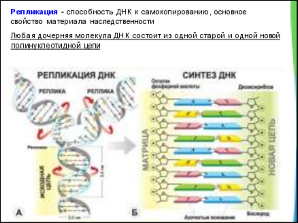 Репликация - способность ДНК к самокопированию, основноесвойство материала наследственности