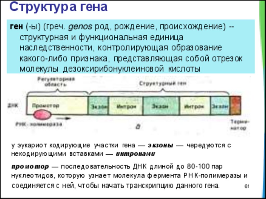 промотор — последовательность ДНК длиной до 80-100 пар