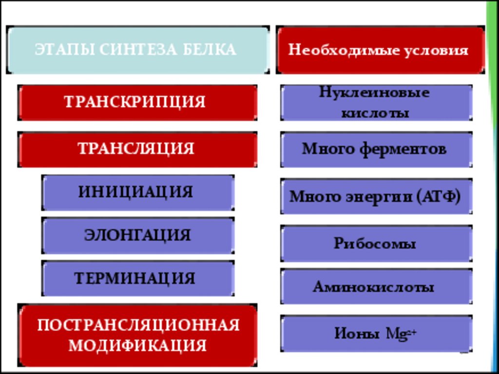 ЭТАПЫ СИНТЕЗА БЕЛКАНеобходимые условия