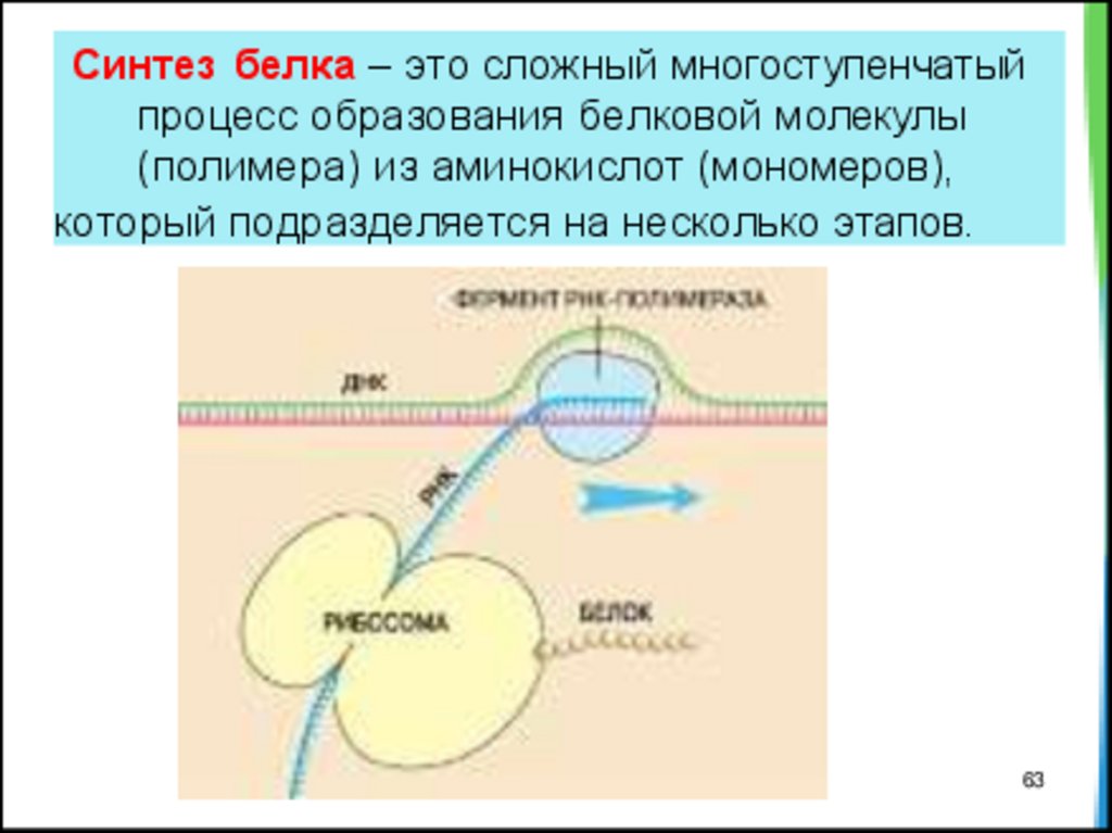 Синтез белка – это сложный многоступенчатыйпроцесс образования белковой молекулы