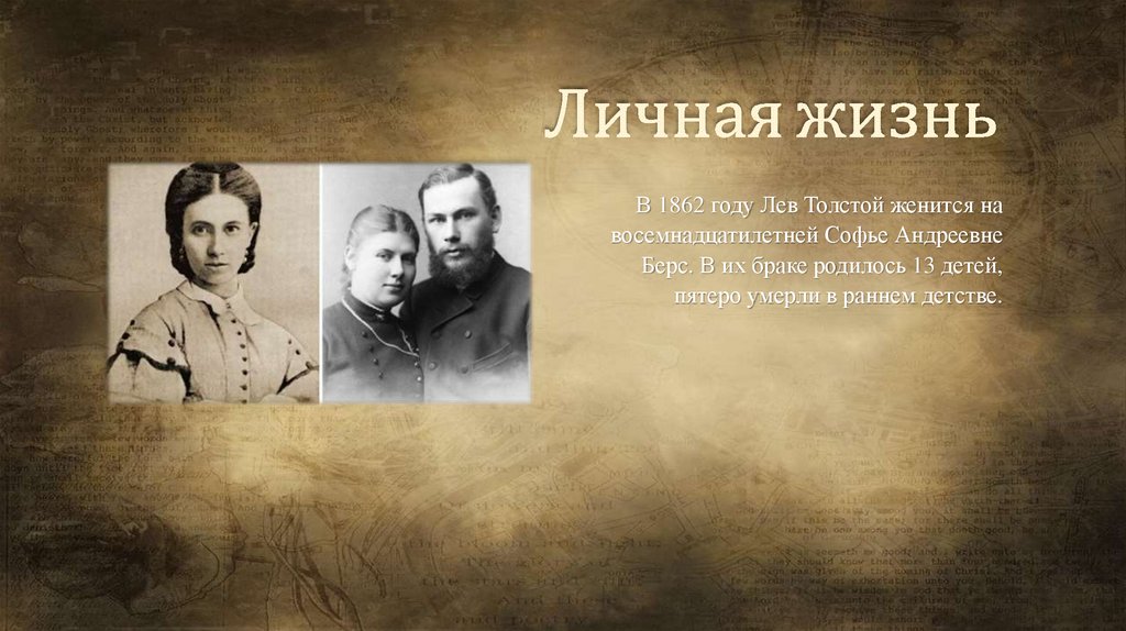 В 1862 году Лев Толстой женится навосемнадцатилетней Софье Андреевне