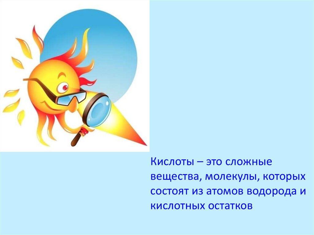 Кислоты – это сложныевещества, молекулы, которых