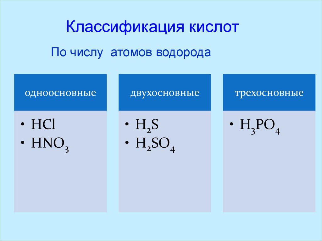Классификация кислотПо числу атомов водорода