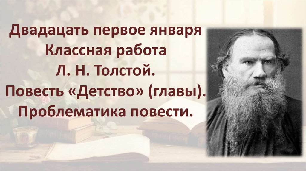1. Двадацать первое января Классная работа Л. Н. Толстой. Повесть «Детство» (главы). Проблематика повести.