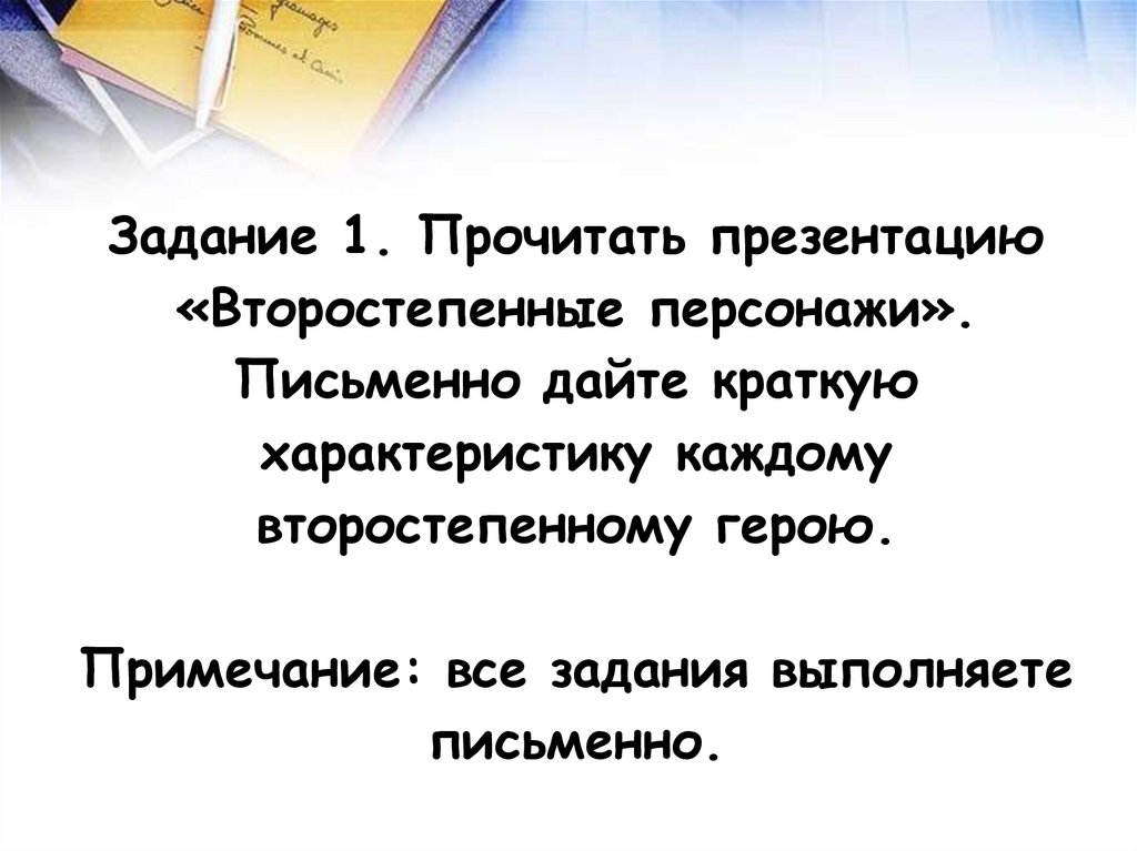 Задание 1. Прочитать презентацию«Второстепенные персонажи».