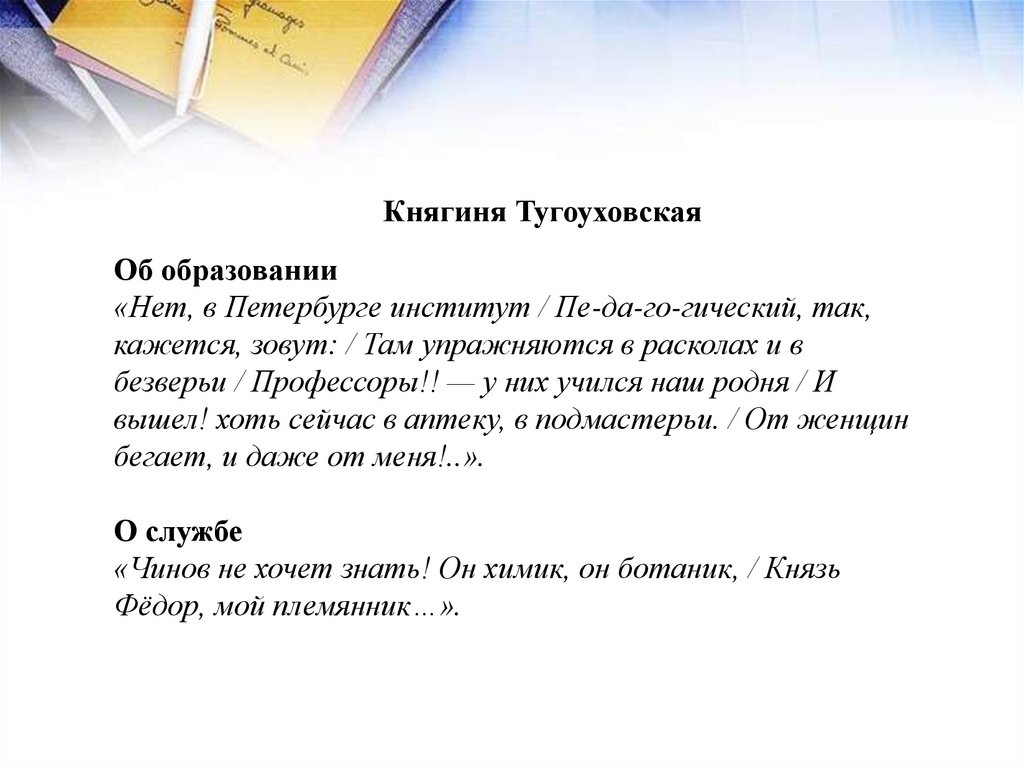 «Чинов не хочет знать! Он химик, он ботаник, / Князь
