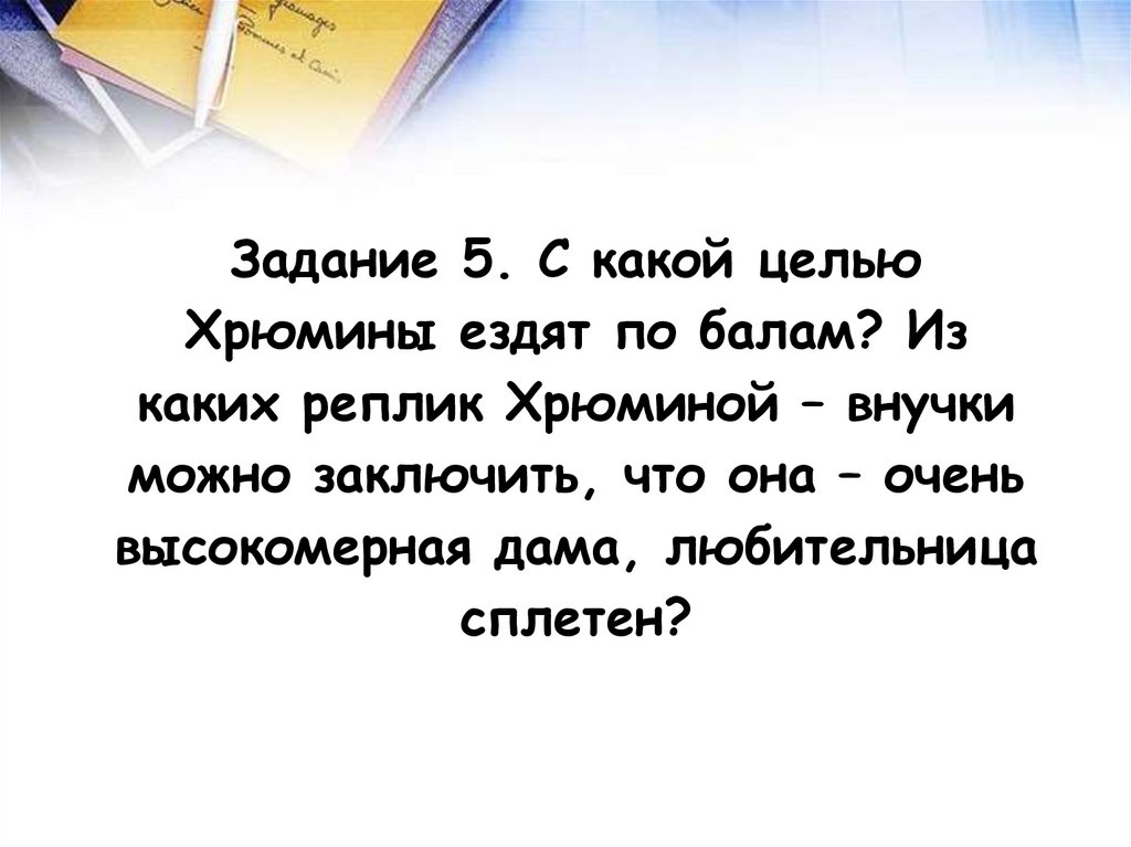 Задание 5. С какой цельюХрюмины ездят по балам? Из