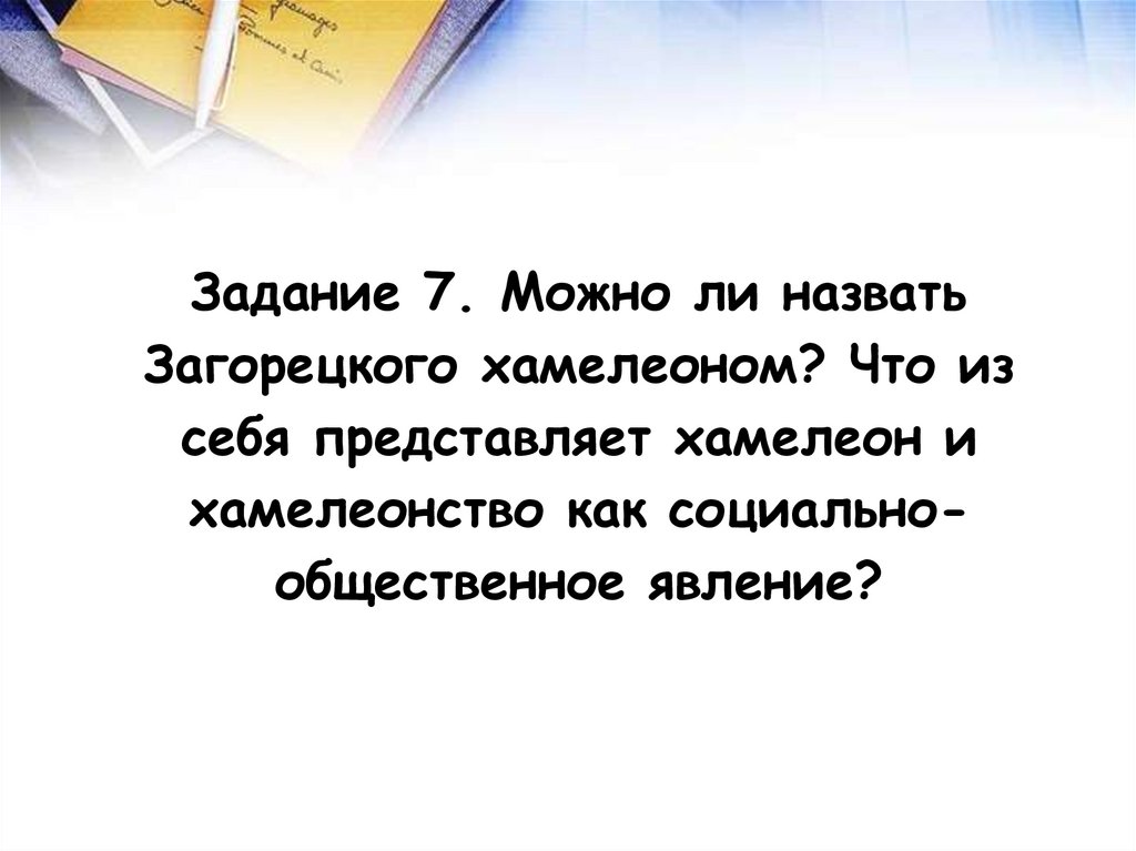 Задание 7. Можно ли назватьЗагорецкого хамелеоном? Что из