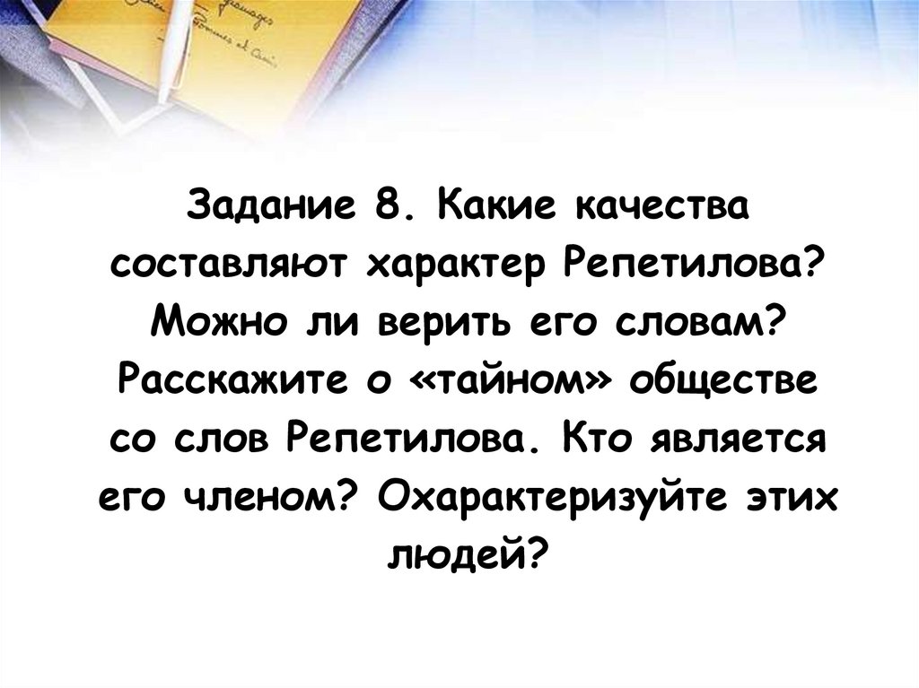 Задание 8. Какие качествасоставляют характер Репетилова?
