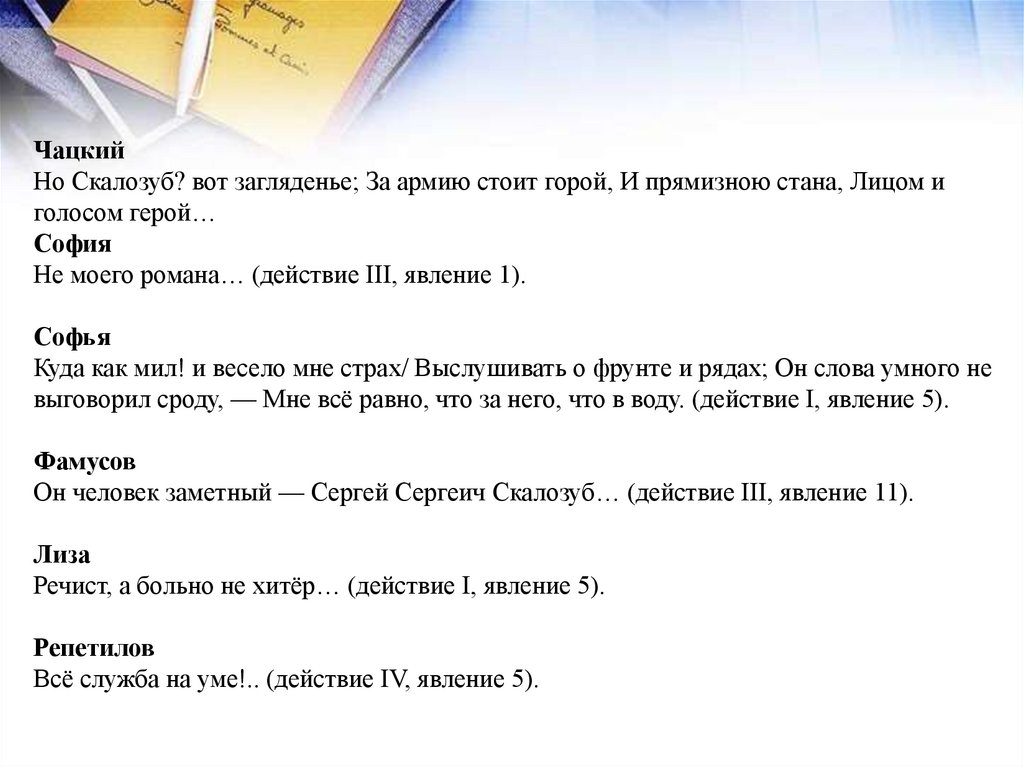 Задание 2. Прочитайтевысказывания о Скалозубе других