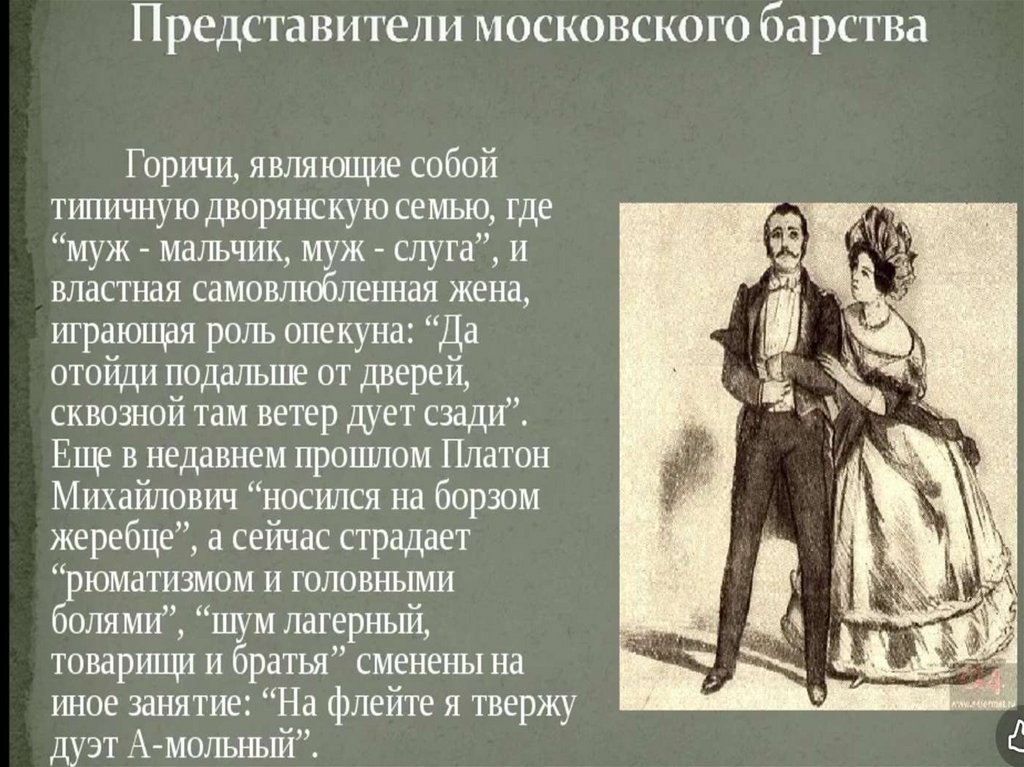 Молодая дама Наталья Дмитриевна и её мужПлатон Михайлович. Оба старые знакомые Чацкого,