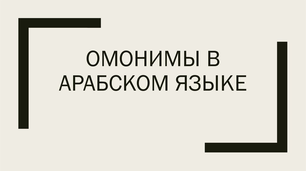 1. ОМОНИМЫ В АРАБСКОМ ЯЗЫКЕ