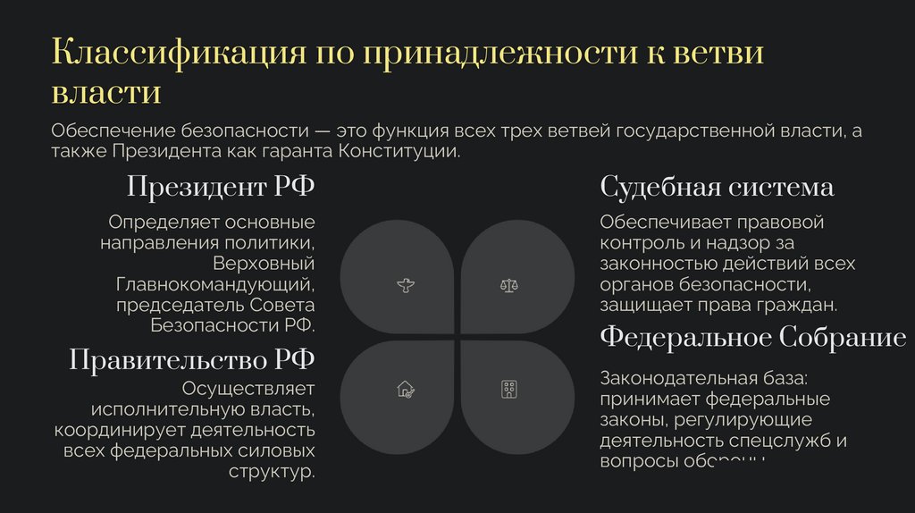 Обеспечение безопасности — это функция всех трех ветвей государственной власти, а