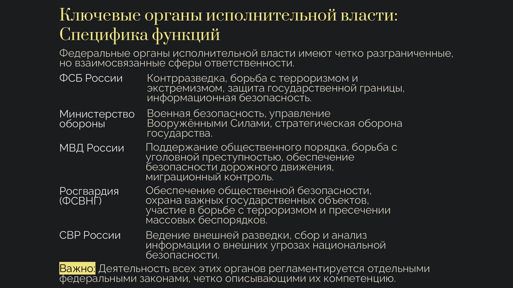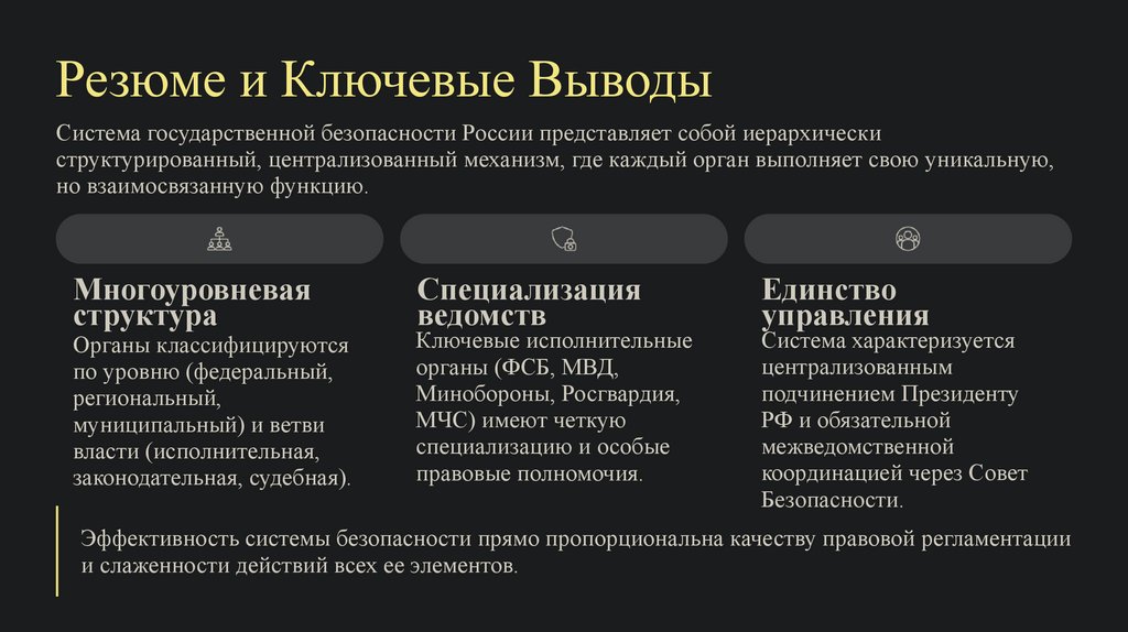 Резюме и Ключевые ВыводыСистема государственной безопасности России представляет собой иерархически