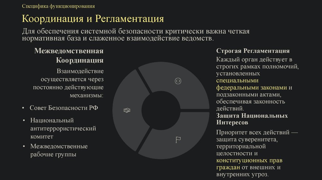 Специфика функционированияКоординация и Регламентация