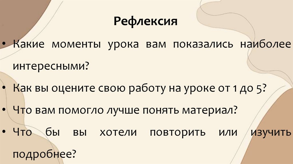 • Как вы оцените свою работу на уроке от 1 до 5?