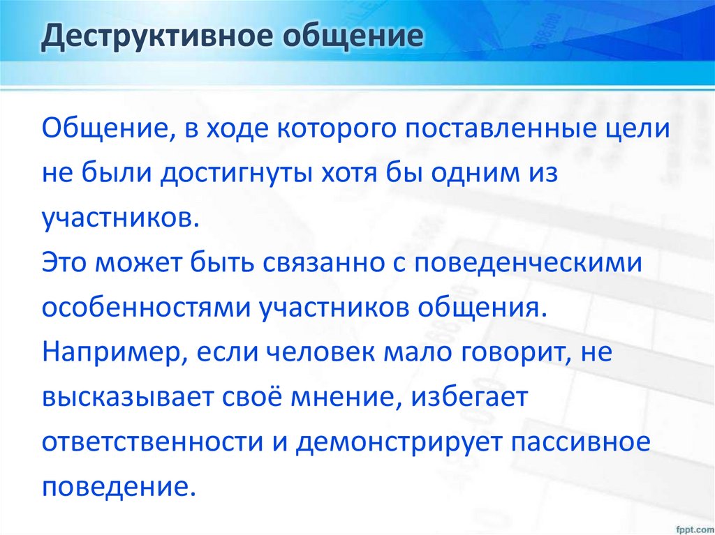 Деструктивное общениеОбщение, в ходе которого поставленные цели
