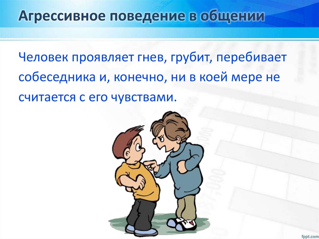 Агрессивное поведение в общенииЧеловек проявляет гнев, грубит, перебивает
