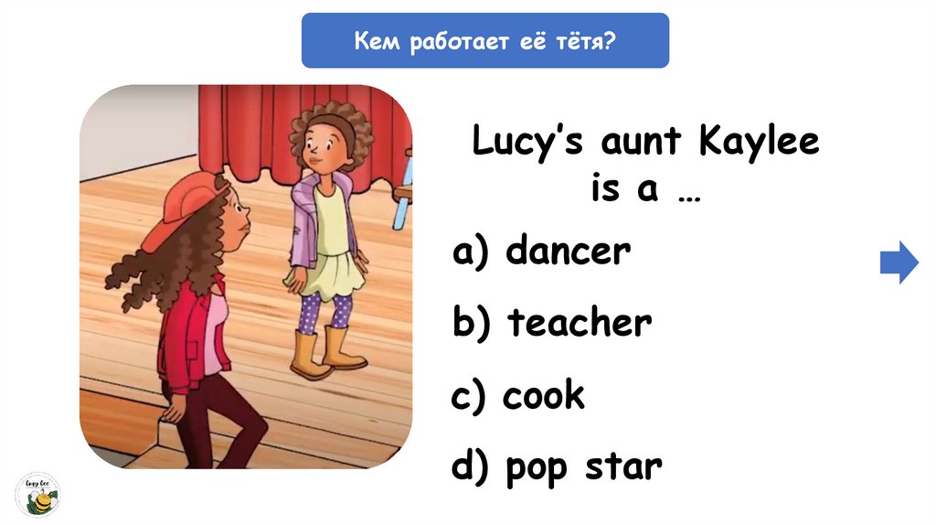 Кем работает её тётя?Lucy’s aunt Kaylee