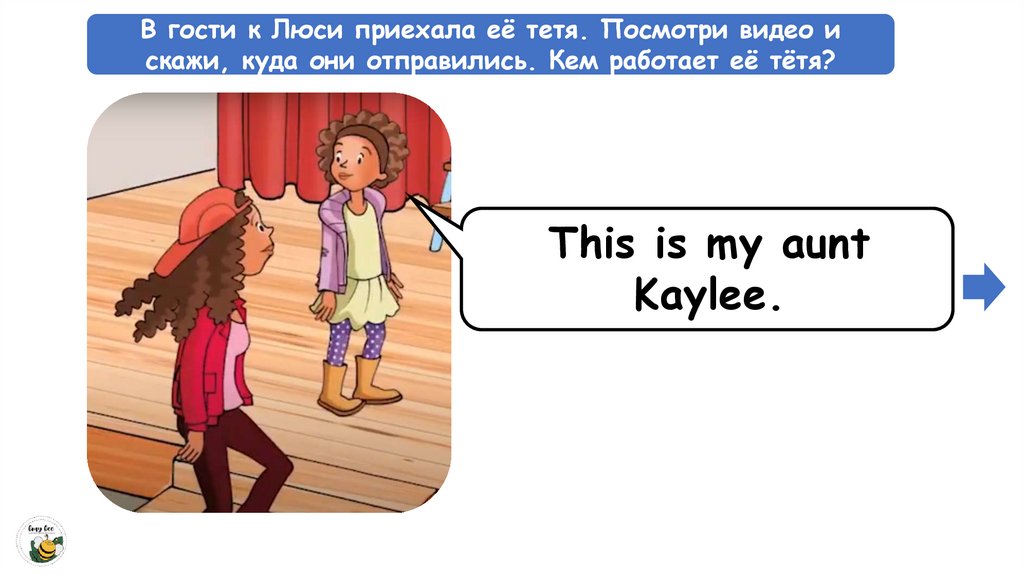 В гости к Люси приехала её тетя. Посмотри видео искажи, куда они отправились. Кем работает её тётя?