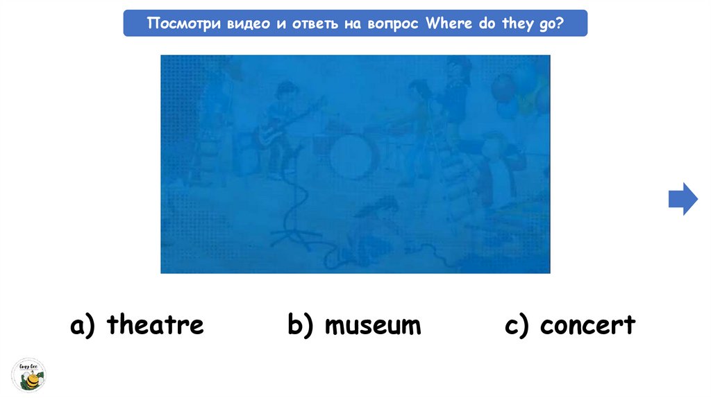 Посмотри видео и ответь на вопрос Where do they go?a) theatre