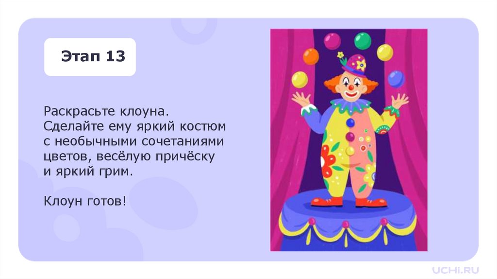 Раскрасьте клоуна.